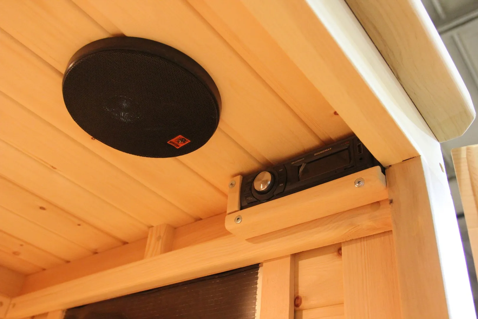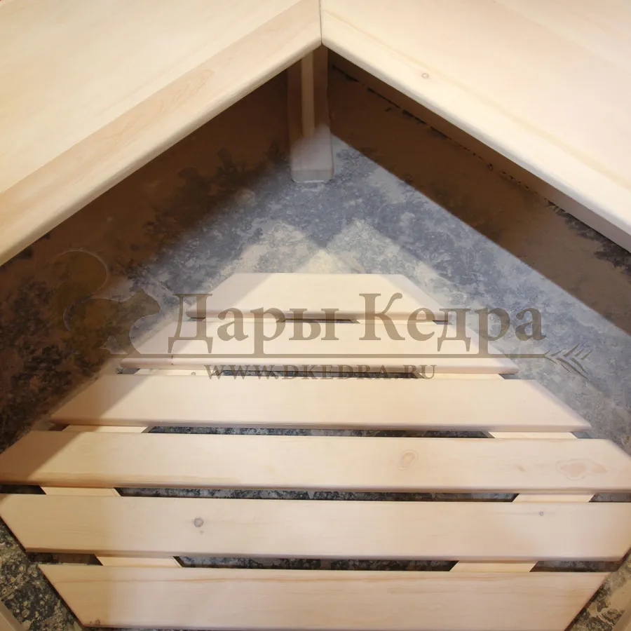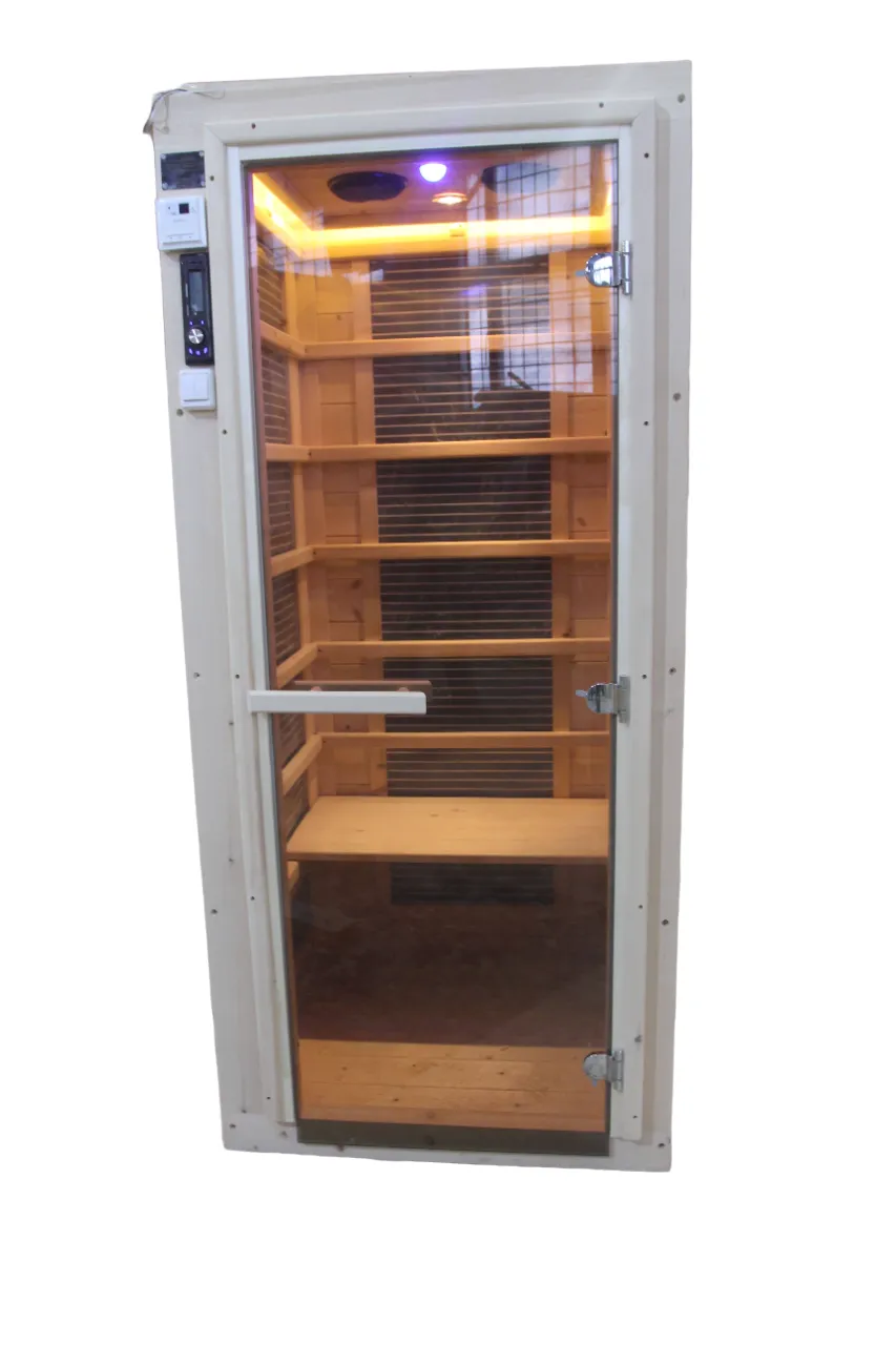 Это специально оборудованная кедровая кабина для прогрева тела человека сухим теплом. Воздух в таких парных не нагревается. Инфракрасные лучи воздействуют на тело, равномерно прогревая мышцы, суставы и органы. Керамические излучатели похожи на лампы, имеют высокую температуру нагрева, поэтому защищены противоожоговыми решетками. Тело человека в таких саунах нагревается интенсивнее. Работает кабина за счет электричества. Установка сауны в угол, позволяет рационально использовать пространство помещения. Эта вместительная модель подходит для коммерции.
