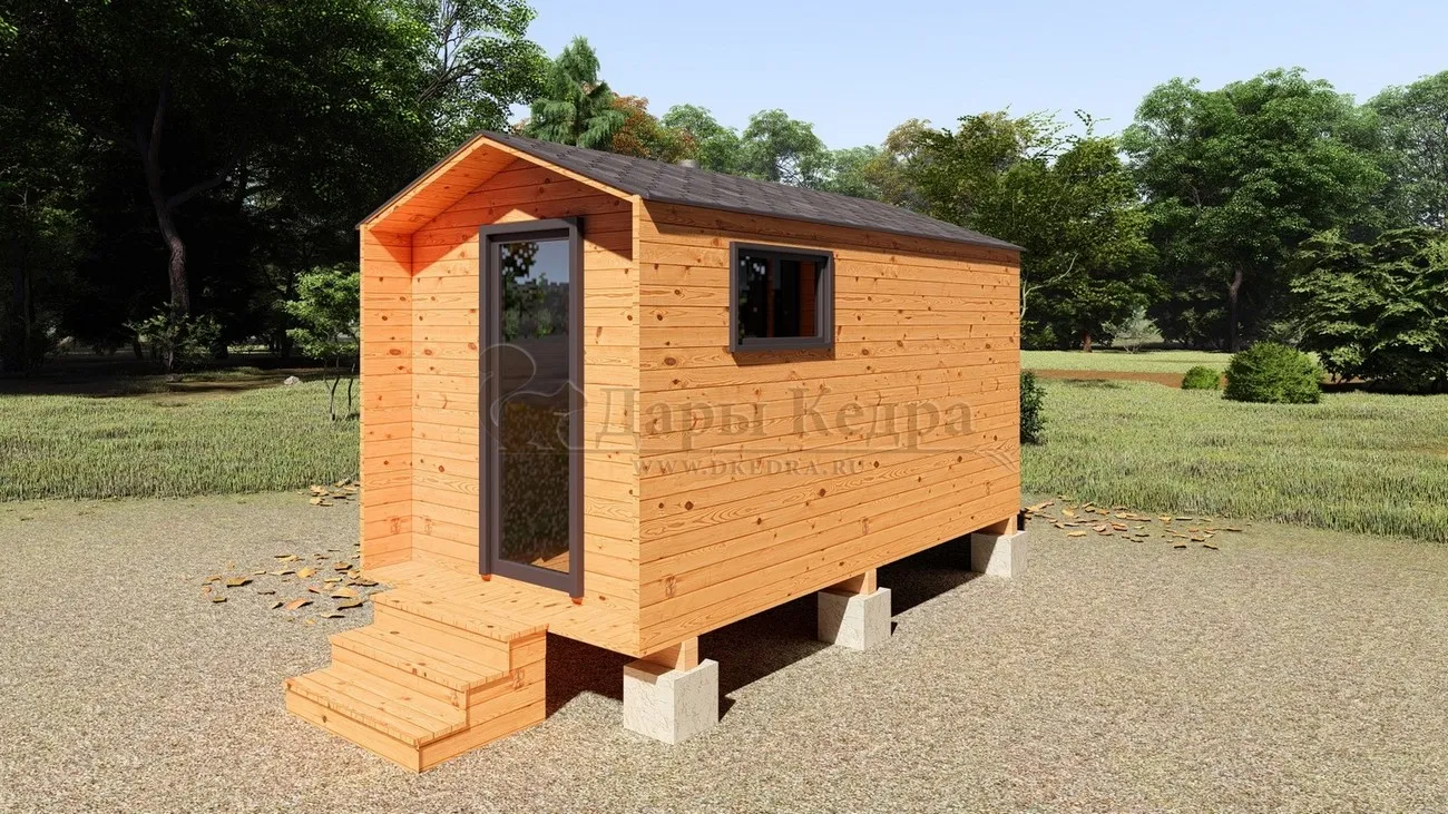 Каркасно-щитовая баня из кедра «Мини» с верандой Это классическая прямоугольная модель бани с двумя отделениями: парилкой и раздевалкой. Для удобства пользования раздевалка оснащена лавочкой и вешалкой. Парилка оборудована двухуровневым открытым полком и печью. За счет небольшой конструкции баня нагревается в течении 30 минут. На просторной веранде можно оставить вещи или отдохнуть после парения. Каркасно-щитовую баню можно заказать как в готовом, так и в разборном варианте. В разборной модели готовые щиты из кедра быстро собираются в полноценное строение, что также позволяет исключить лишний строительный мусор. Такая баня не требует полноценный фундамент, поэтому при необходимости ее можно перенести в другое место. Обращаем Ваше внимание, что в стандартную комплектацию бани входит полок открытого типа в парной. Дополнительно можно заказать полок закрытого типа или лавку! Древесина кедра насыщена эфирными маслами и фитонцидами, которые активируются при воздействии температур. Таким образом, парение в каркаско-щитовых банях из кедра становится еще полезнее.