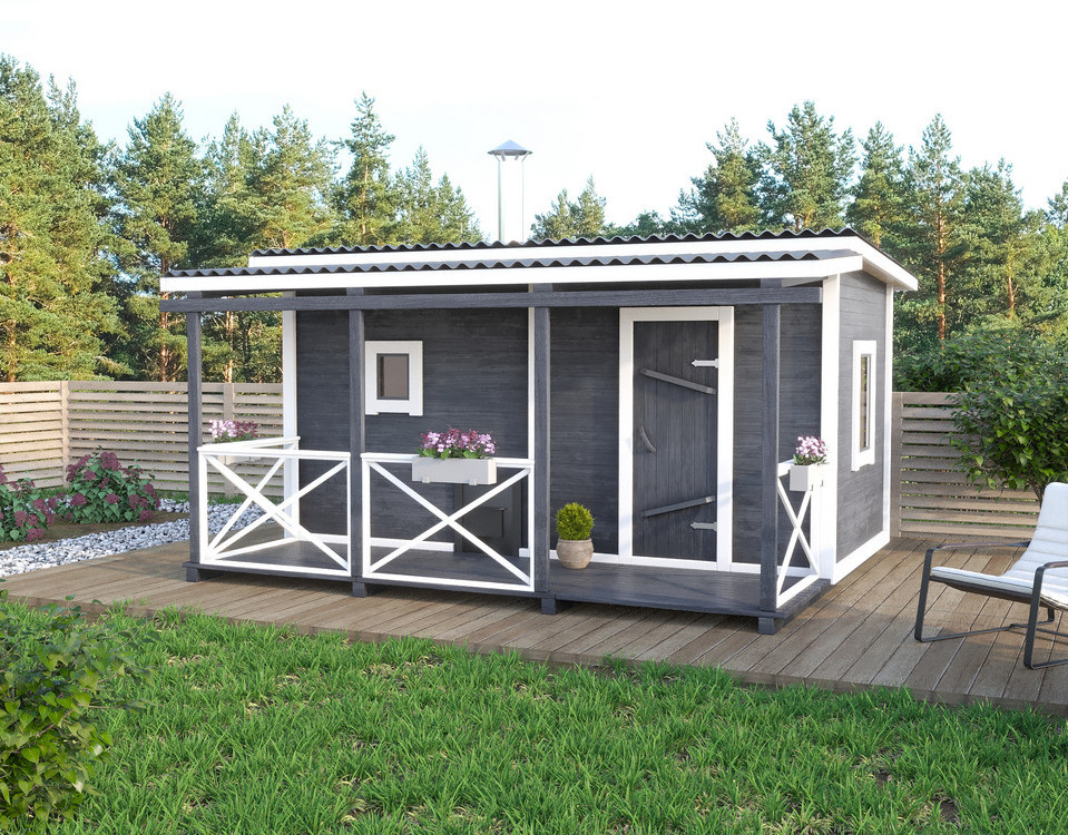 Хорошая баня, функциональная небольшая и топится быстро. Козырек украшает баню, спасает от дождя! Спасибо сотрудникам за доставку в срок и профессиональную консультацию!