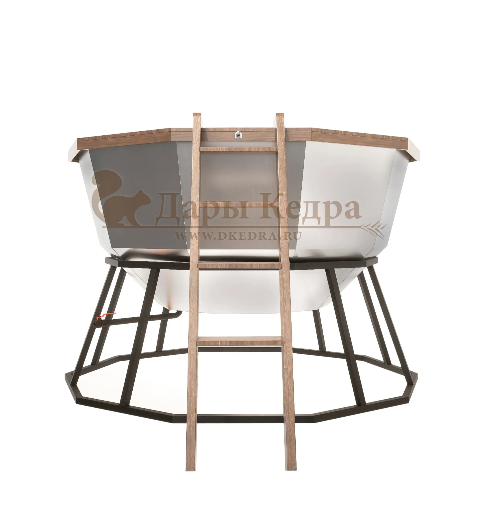 Конструкция устанавливается на прочную подставку, обеспечивающую устойчивость. Для удобства предусмотрена лестница, ведущая внутрь чана. Внутри оборудованы удобные сиденья, позволяющие комфортно расположиться. В зависимости от модели, вместимость составляет от 5 до 10 человек — отличный вариант для семьи или компании.