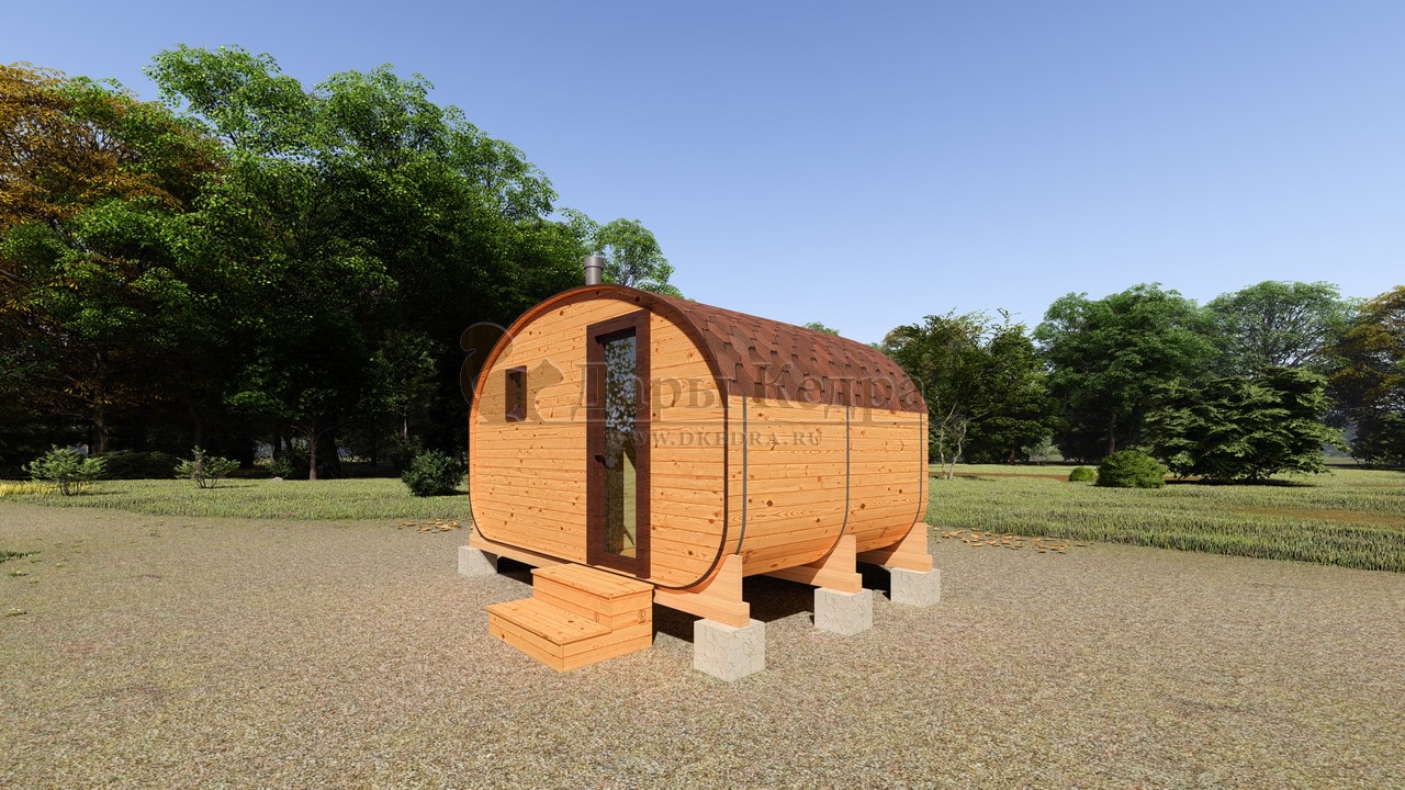 Баня-бочка представляет собой конструкцию в виде бочонка без углов. Такая форма считается оптимальной для равномерного распределения пара по всей внутренней поверхности парной. Таким образом, пар не скапливается в одном месте, а циркулирует по всему объему. Соответственно, круглая (квадратная, овальная) баня экономичная: топится быстро, требует дров мало.