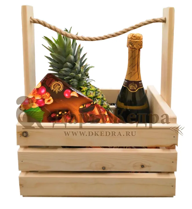 • Деревянный ящик «Подарок» Компания Дары Кедра изготавливает деревянные ящики, которые в преддверии праздников могут быть использованы в качестве оригинального оформления подарка. В дальнейшем такой ящичек может стать интерьерной вещицей для хранения фруктов, овощей и пр. Обращаем Ваше внимание, что содержимое ящика не входит в его стоимость!